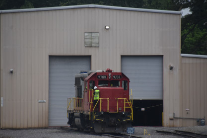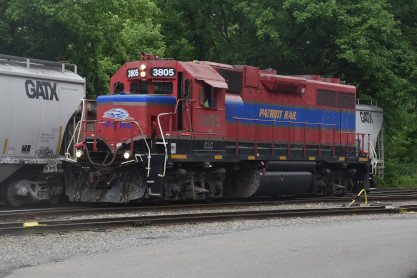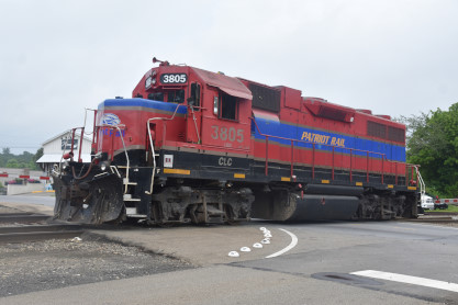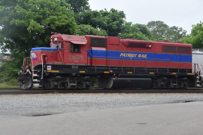 Patriot Rail GP38AC 3805, ex. Larry's Truck and Electric 3805, exx. Union Pacific 293, exxx. Union Pacific 1793, exxxx. Union Pacific 1993, exxxxx. Missouri-Kansas-Texas 336, exxxxxx. Illinois Central Gulf 9513, nee Illinois Central 9513, built by Electro-Motive Division in 1970. This crew had more spectators than they ever had of this light engine move which briefly blocked the main highway.