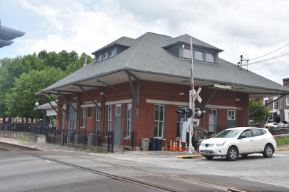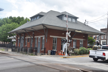 Western and Atlantic Cartersville {Nashville, Chattanooga and St. Louis} station built in 1902. This red brick gabled station serves as a welcome center which has had the older freight end removed. Cartersville was founded in 1832 on the site of the railroad underpass south of the point and was called Birmingham for the English coal and iron city, It was later moved in 1850 and incorporated as Cartersville in 1854, named for Colonel Farish Carter of Milledgeville, the owner of a large plantation. Cartersville was designated the seat of Barton County in 1867 following the destruction of Caseville by Sherman's March to the Sea.