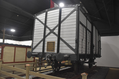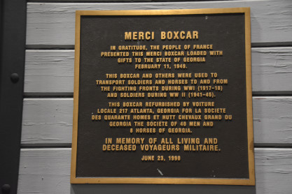 The Georgia Merci Car. In the winter of 1947-48, the United States began a relief effort to war-torn France and Italy. Citizens donated more than seven hundred box cars of goods, food and clothes to an "American Friendship Train". In gratitude, a group of French citizens organised a private effort to thank the people of the US for their assistance in the two world wars and for the relief aid. The result was the forty-nine box car "Merci Train". The train arrived in New York aboard the steamship Magellan on 3rd February 1949. One box car was for each of the states, and one was to be shared between the District of Columbia, Alaska and Hawaii. They were called "40 et 8" cars because the French military rated them to carry forty soldiers or eight horses.
