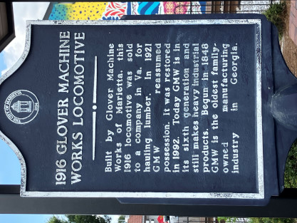 Coulbourn Brothers Lumber narrow gauge 2-6-0 4 built by the Glover Machine Works 1917 in Marietta. In 1923, it was repossessed by the Glover Machine Works and returned to Marietta. Not much appears to be known about 4, other than that it was a coal burner and has 24" drivers and 8" x 4" cylinders. It is on display across the tracks from Marietta’s old passenger depot.