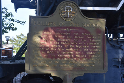 Gainesville Midland 2-10-0 208, ex. donated City of Winder and Barrow County in 1959, exx. sold to Gainesville Midland Railroad Company 208, nee Seaboard Air Line Railway Company 530, built by Baldwin in 1930.