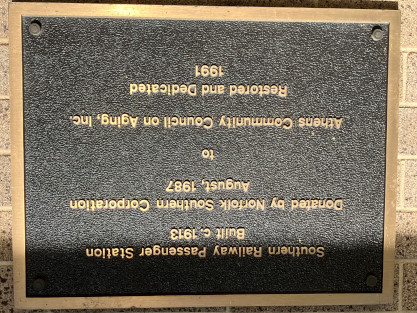 Southern Railway Athens brick combination depot built in 1913 which saw its last passenger train in 1951. During the Civil War, Athens became a significant supply center when the New Orleans armory was relocated to the present day Chicopee building.