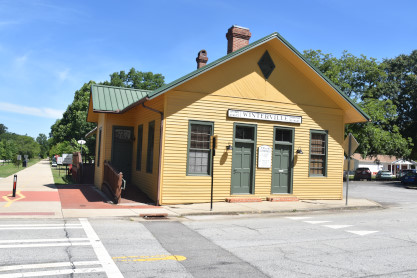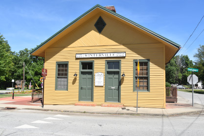 Georgia Railroad Winterville wooden combination depot built in the late 1800's. Winterville was named after John Winter, a railroad official, and incorporated in 1904 and was first known as Six Mile due to the distance from Athens. It is the Marigold Capital of Georgia and has celebrated a Marigold Festival for over thirty years.