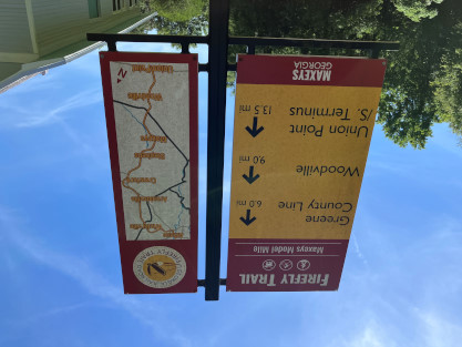 Georgia Railroad Maxeys wooden combination depot has been restored. It is on the 40-mile Union Point-to-Athens line abandoned in 1984. As the area began to grow, local landowner William H. Gilliam was appointed U.S. Postmaster of the town. First known as "Shanty", Gilliam set up shop in the newly-built railroad depot and acted as Shanty's first depot agent. Lewis Salmons {1842-1844} changed the post office to "Salmonsville". Postmaster George W. Maxey {1848-1850} sucessfully lobbied to have the local post office changed to Maxey. By the Civil War the town had added a possessive "s".
