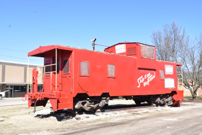 St. Louis-Southwestern caboose 128 built by the railroad. From here, Elizabeth drove us to Sallisaw and learnt that as James under the weather, David and Rachel booked us into the Blue Ribbon Inn for one night. Rachel prepared some rice and beef for dinner with vanilla ice cream for dessert then we visited a while before returning to the motel.