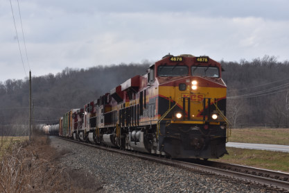 2/22/2024 The two of us arose and after our regular morning preparations, left Sallisaw and drove north to Stilwell, having breakfast at McDonald's then followed the Kansas City Southern mainline and near Lanagan, stopped for a northbound KCS train.