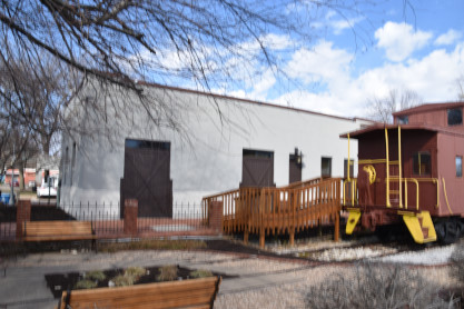 Observation car "Empire State" built by Pullman in 1912. It became a Missouir Pacific maintenance-of-way car then was owned by the Little Rock Chapter of the National Railway Historical Society before becoming Fayetteville Community Bank.
