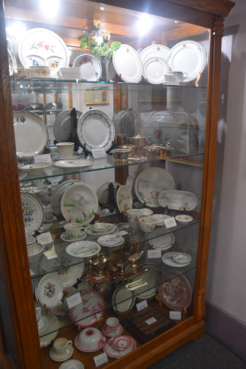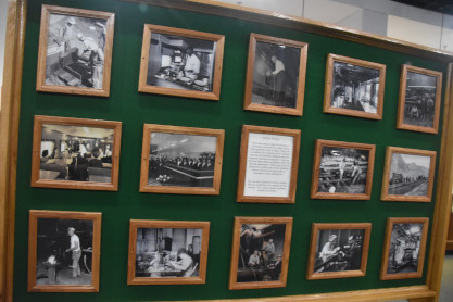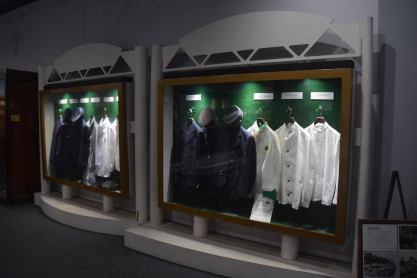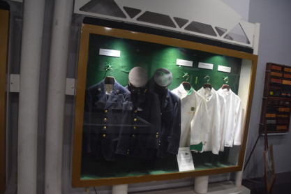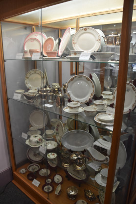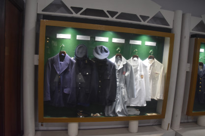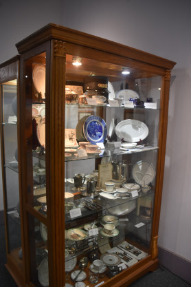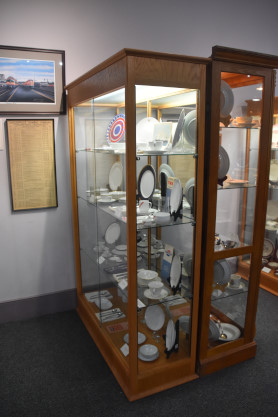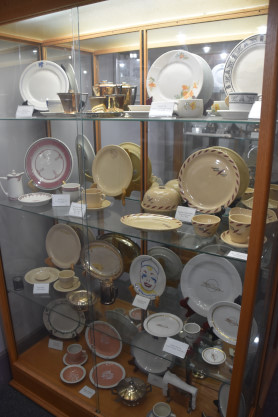Conductor hats and dining car china.