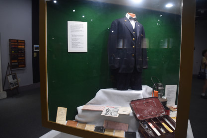 Passenger train tonductor uniform and items used by Howard Mowers in his Pennsylvania Railroad and Amtrak career.