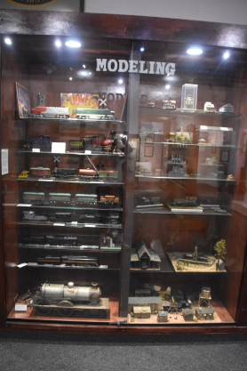 Railroad collectibles and models of locomotives.