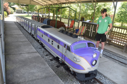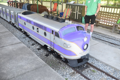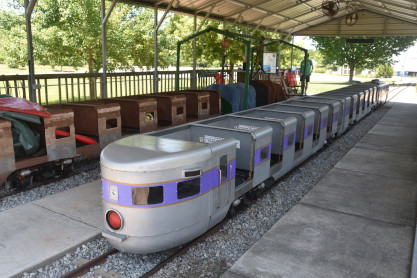 Although this train was not operating as the engineer had not yet arrived, the Park Train dates to 1957, when it started service at the Birmingham, Alabama, Zoo. Long dormant, two locomotives and four cars were donated to the Museum in 2000. The train we operate, in Atlantic Coast Line colors, was carefully restored and returned to service in 2012. We are currently seeking funding to restore and operate the second train set, likely in Southern Railway paint.