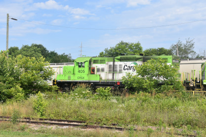 Cargill Incorporated GP9 405, ex. Utah Central 102, nee Cheasepeake and Ohio 6158, built by Electro-Motive Division in 1958. We then drove to the Southeastern Railway Museum and had about twenty minutes to wait until the museum opened at noon.