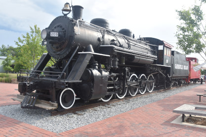 Gainesville Midland 2-10-0 209, ex. Durham & Southern Railway 209, nee Seaboard Air Line 533, built by Baldwin in 1930. With 208, it used to double-head the GM freight runs and 206 and 209 double-headed the last freight train into Gainesville in July 1959 after the Seaboard Air Line took over the last remaining forty mile stretch of Gainesville Midland track, from Gainesville to Athens. It is on display at the corner of West Academy Street and Jesse Jewell Parkway.