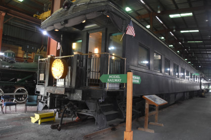 Norfolk Southern business car NS30 "Marco Polo" built by Pullman in 1927. It was used on many occasions by Franklin Delano Roosevelt while he was Governor of New York and the President of the United States travelling to Warm Springs, Georgia. "Marco Polo" was sold to the Central of Georgia Railway and became their Office Car "Savannah". After the Central of Georgia merged into the Southern Railway, the "Savannah" became an entertainment venue for their corporate office in Washington. DC The Norfolk Southern Corporation upgraded the car in 1989 in Roanoke and returned it to its original name.