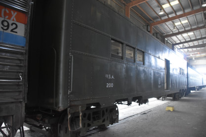 United States Army kitcken car 200 built by American Car and Foundry in 1944 and used to prepare and serve food on troop trains. It was donated in 1966.
