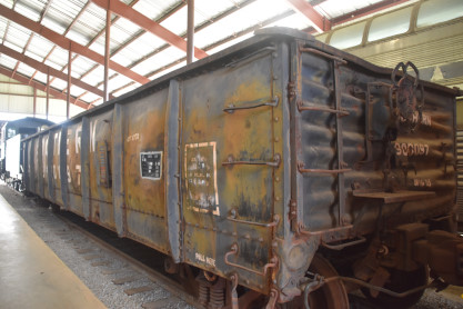 Norfolk Southern gondola 900097MW built by the railroad in 1938. This hopper was built in Norfolk and Western's Roanoke shops and was donated to the Museum by Norfolk Southern.
