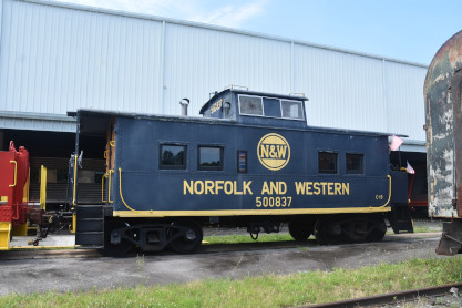 Norfolk and Western "Northeastern" caboose 500837, nee Pittsburgh and West Virginia Railway 837 built by the railroad in 1940. The P&WV was acquired by the Norfolk & Western through a merger in 1964, 500837 is painted with blue sides and roof consistent with Norfolk and Western painting requirements beginning in 1966.