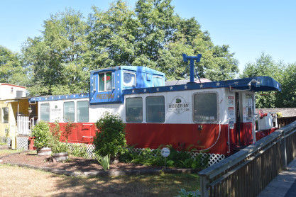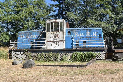 We were happily driving on North US 101 en route to Port Angeles when suddenly came upon stopped traffic caused by an accident that affected both lanes of the road. We had to turn around and I drove down US 107 to State Route 3 through Silverdale where we switched drivers and Elizabeth continued the journey through Bremerton, then to Highway 104, over the Hood Canal Bridge to Port Angeles. Even though time was not really in our favour as we had to be at the Coho Ferry Terminal at 4:15, we could not go through Discovery Bay without stopping for a railroad attraction that Elizabeth had first encountered in 2000.