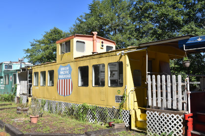 Union Pacific caboose 25745 built by the railroad in 1975 and retired in 1993. It was sold to Sunnen Crane Company in Sequim, Washington then moved about 10 miles to Discovery Bay and used as part of a sandwich shop.