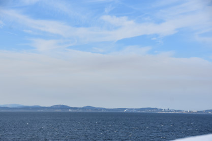 We resumed our journey to Port Angeles, arriving there at 4:30 and had no problems keeping our reservation. We were given a boarding pass that the crew member put on our windscreen as well as a Coho-specific Customs Form. Before we boarded, we returned the completed form and drove onto the ferry.