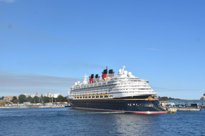 The Disney Wonder Cruise Ship was preparing to leave Victoria as we were arriving in the harbor.
