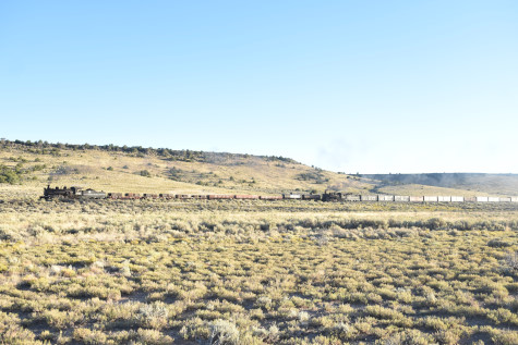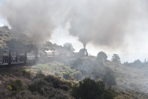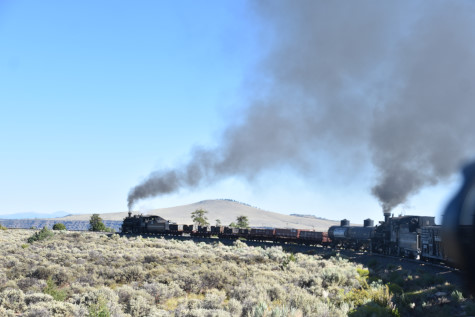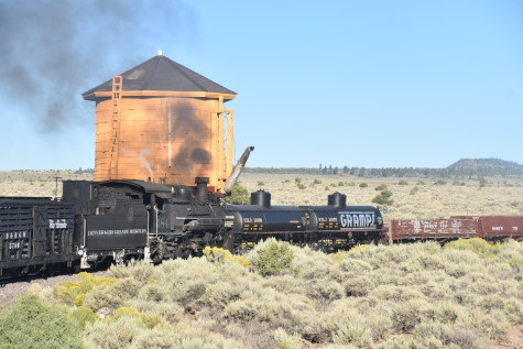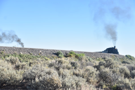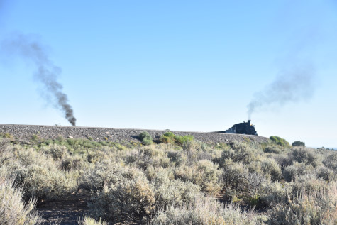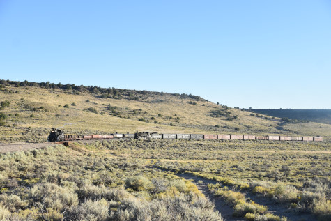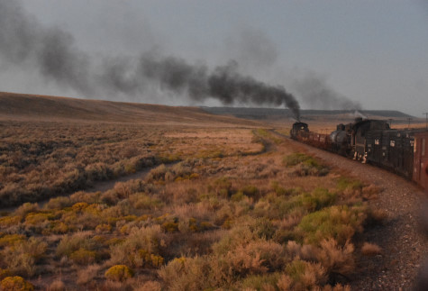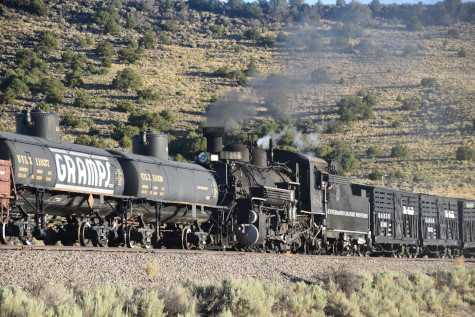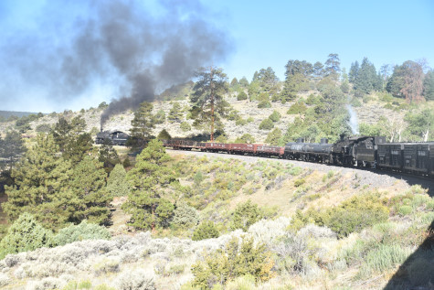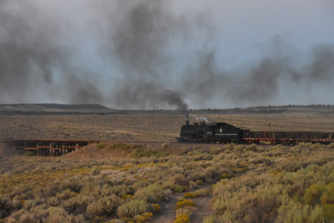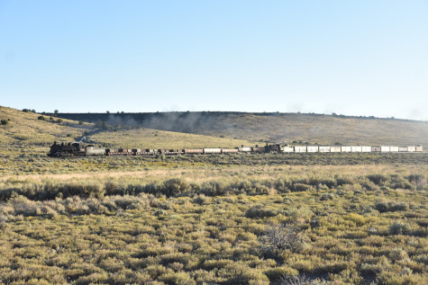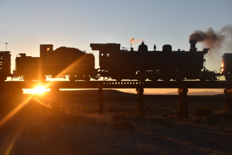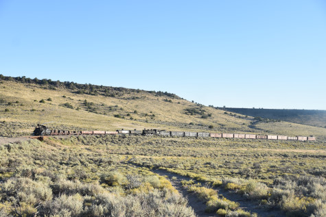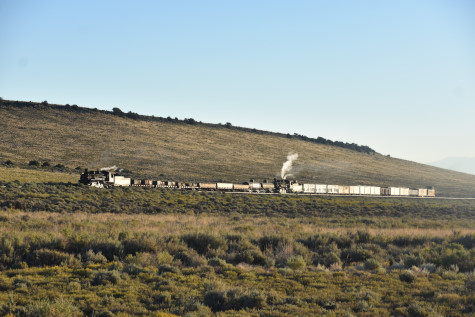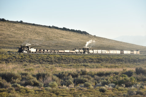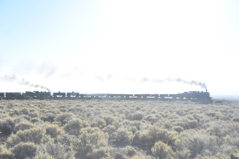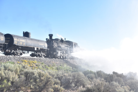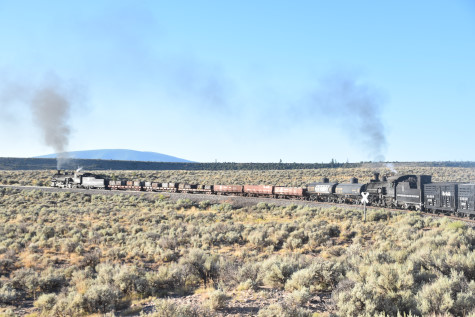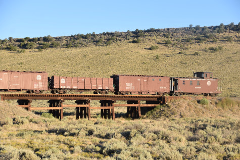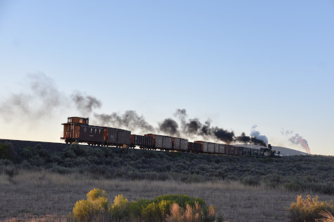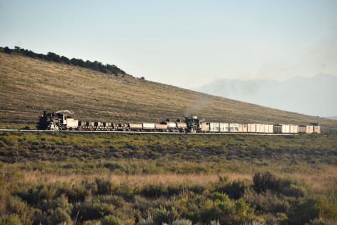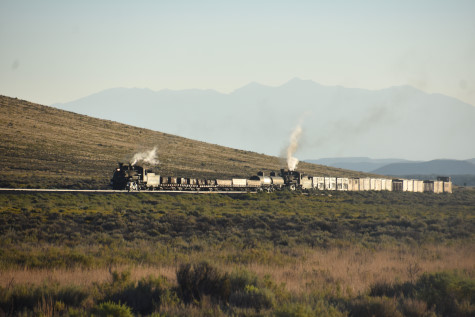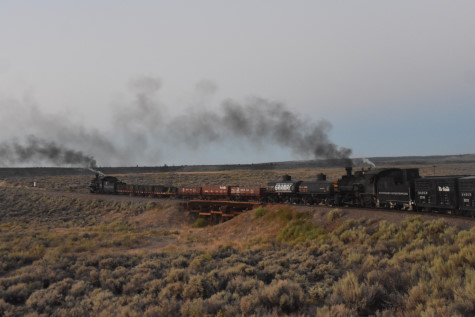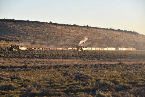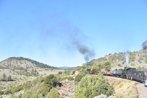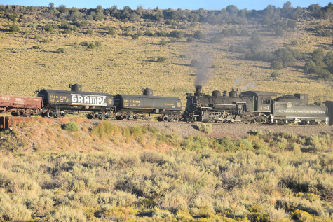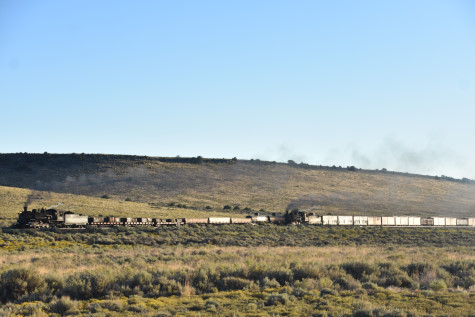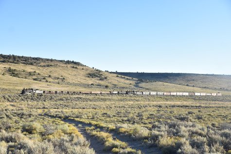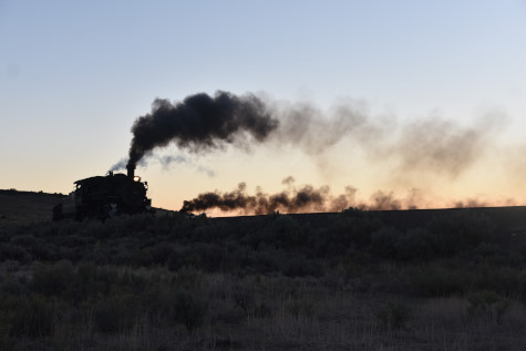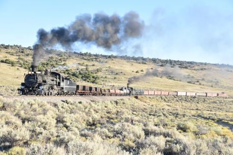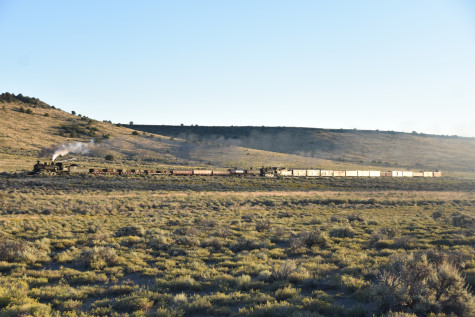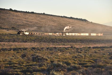 This was the last of the three-day photo charter organized by Dak Dillon in celebration of the 100th anniversary of the K36 locomotives. Today's photo freight would journey through rugged high desert, canyon walls and historic tunnels with the experience of the dramatic transition from high desert to towering rock walls as our K-36 locomotive power through the most diverse terrain on the entire line. This special excursion travelled through steep-walled canyons, navigated two historic tunnels and offered spectacular vistas of the surrounding landscape. For authenticity, the steam locomotives and rolling stock had been lettered "Denver and Rio Grande Western" for these charters.