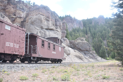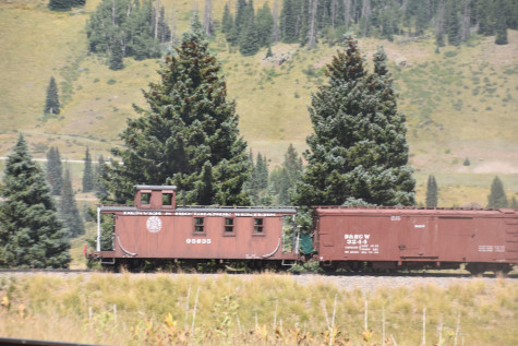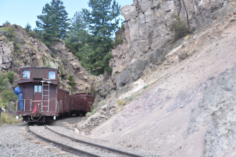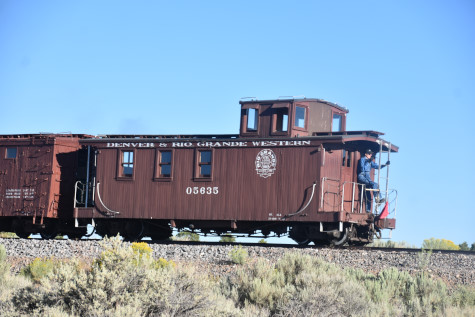Denver and Rio Grande Western caboose 05635. We reboarded and proceed to the next location of Lava Tank.