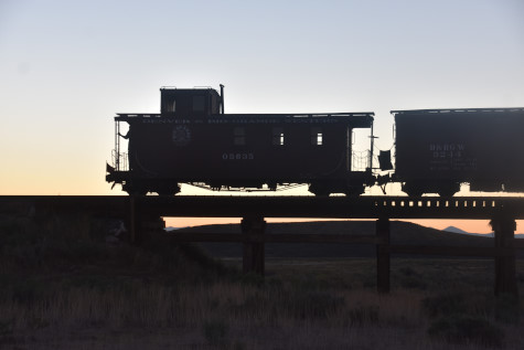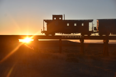 The caboose with the sun rising.