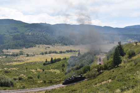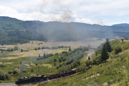 Passing Windy Point, Milepost 331.0, where the grade is up to four percent. Since the road and the tracks were no longer in close proximity, Josh and I, and most of the others, drove back to Chama. It was an uneventful rest of the day and I went to Subway for dinner then turned in early in preparation for tomorrow morning's start.