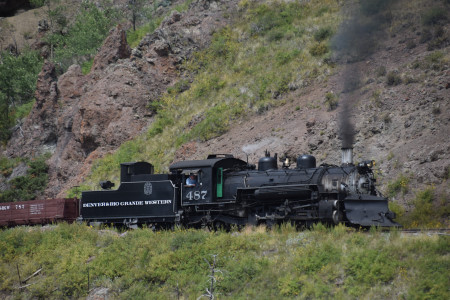 Cumbres and Toltec Scenic Railroad 2-8-2 487, running out of the narrows, Milepost 342.00.