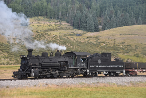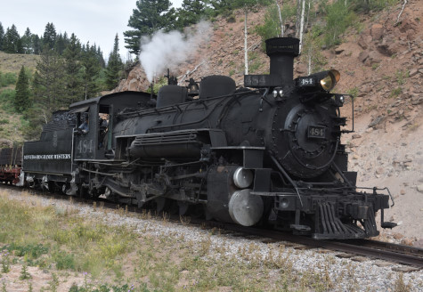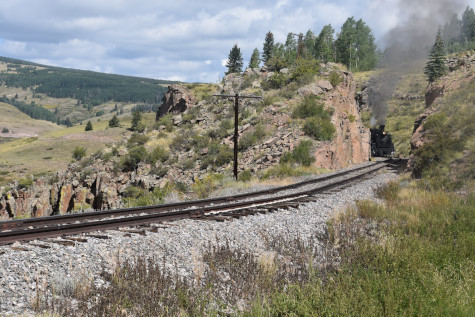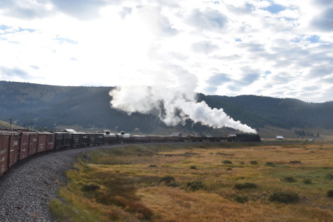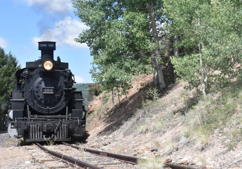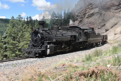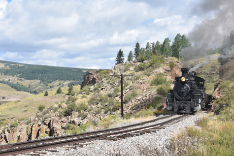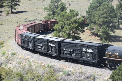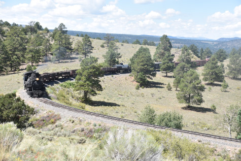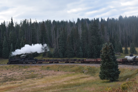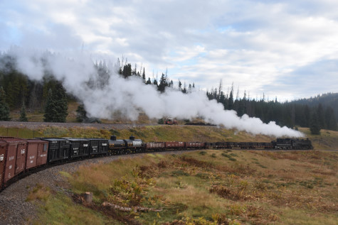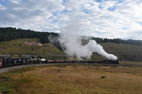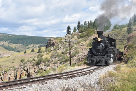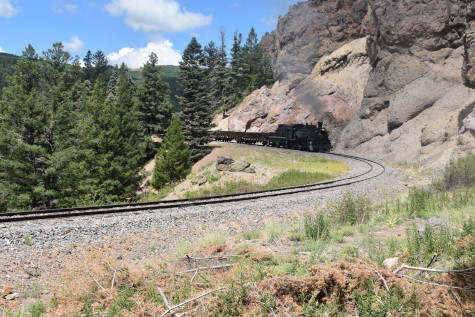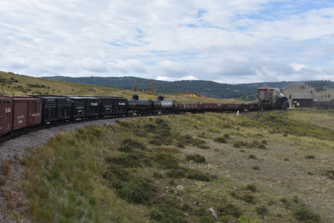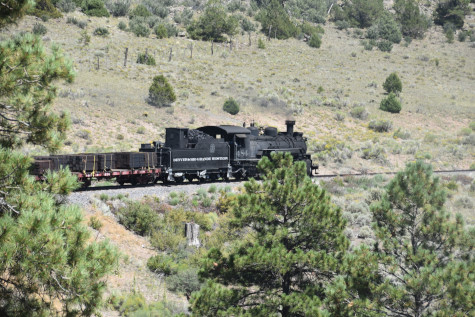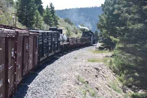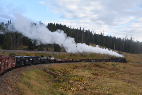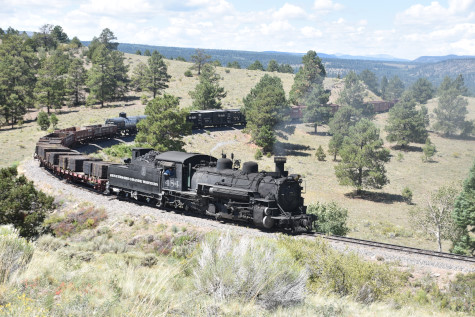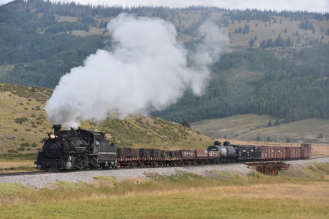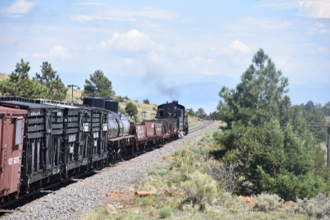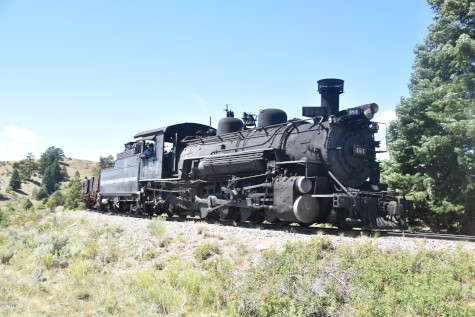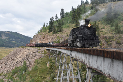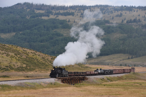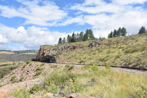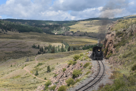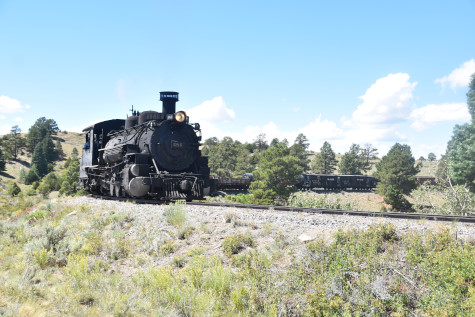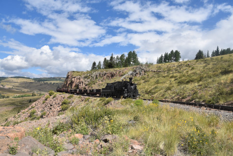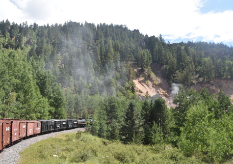 Cumbres and Toltec Scenic 488 rounded a descending curve.