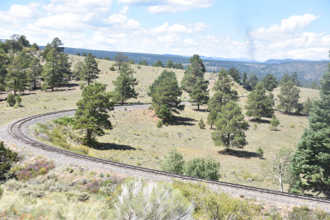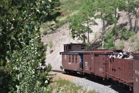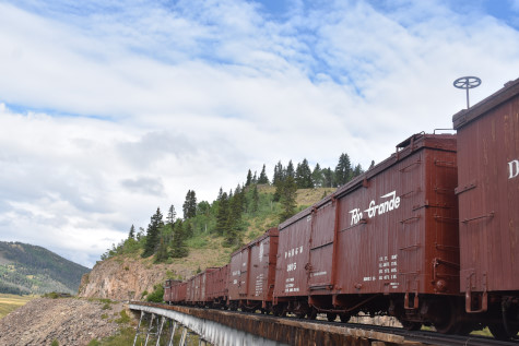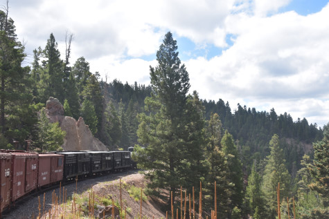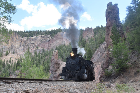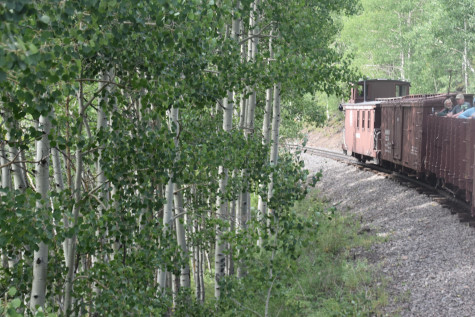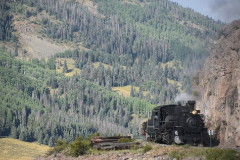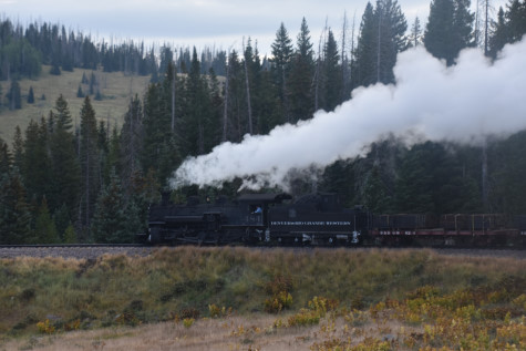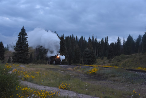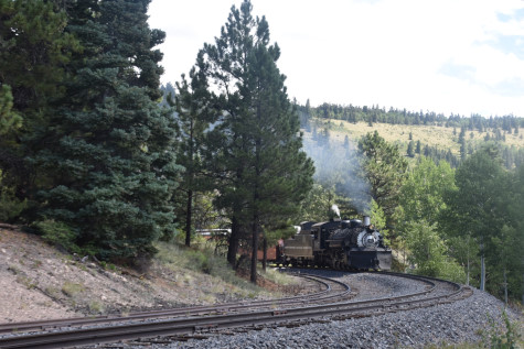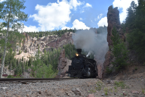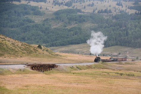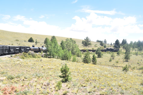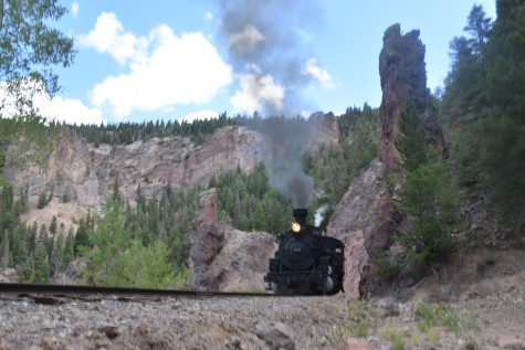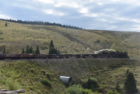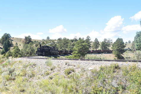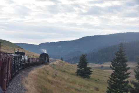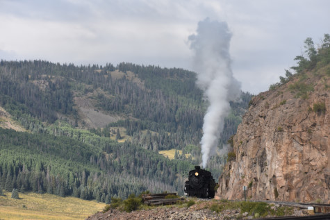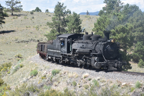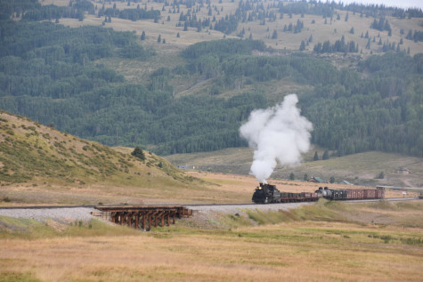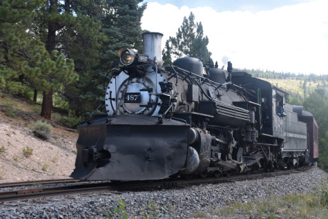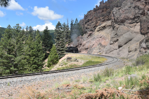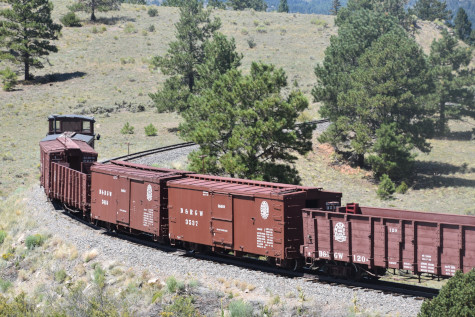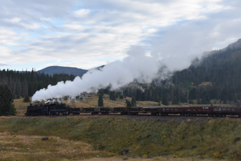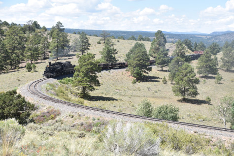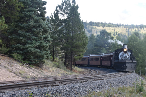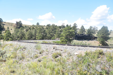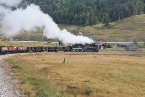 Cumbres and Toltec Scenic 488 rounded a descending curve.