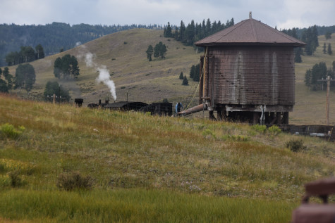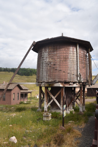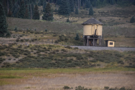 Lava Tank at Milepost 291.55 At 8,000 feet and slightly less than 11 miles from Antonito, the railroad has gained 600 feet in altitude. Lava is still "simply a water station". The original tank burned in the fall of 1971, probably by a careless photographer who had climbed to the top. The present tank was originally in Antonito, but was dismantled and moved here after the fire. Water is brought up from the Rio De los Pinõs by a pumping station located beside the river.