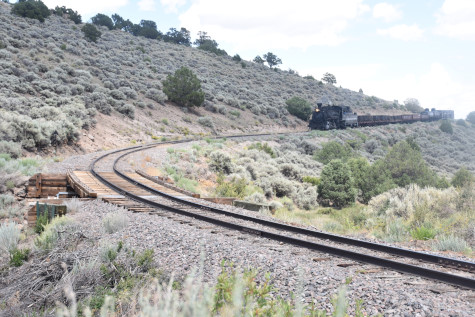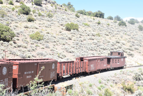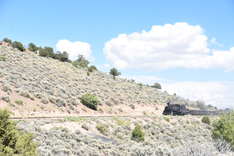 Denver and Rio Grande Western 484 rounds the Lava Loop at Milepost 291.00.