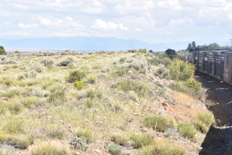 Curving into Sublette, Milepost 306.06, elevation 9,276 feet, where we stopped for water. The station was called Boydsville until December 1880, although the reason for the change is unknown.