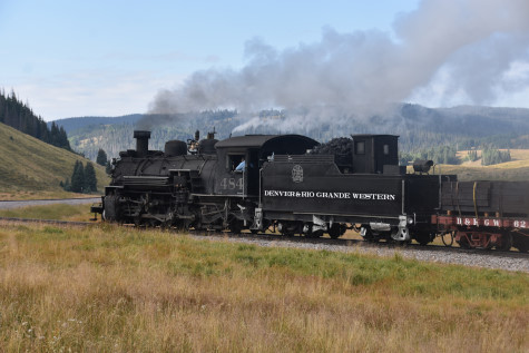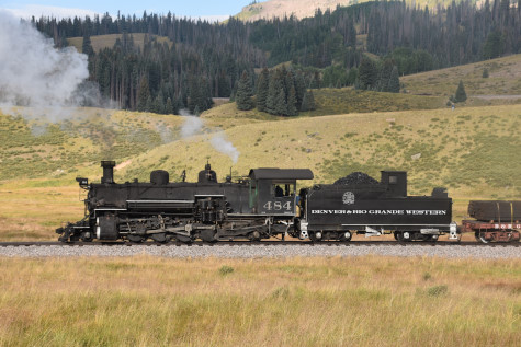Cumbres and Toltec Scenic 2-8-2 484, lettered for Denver and Rio Grande Western for this charter.