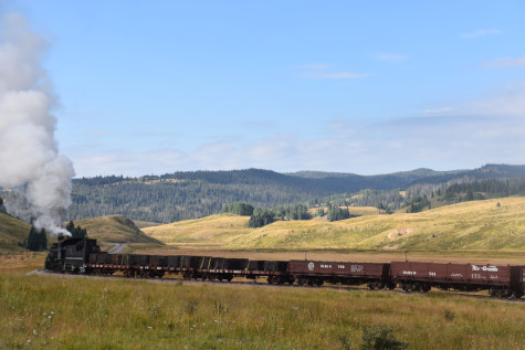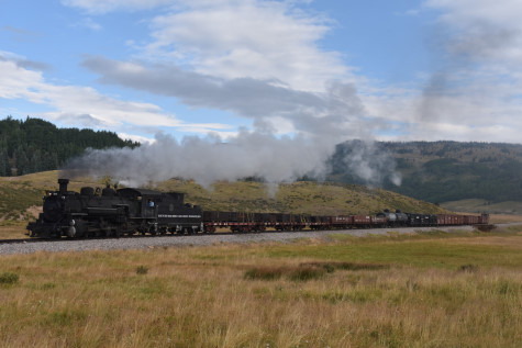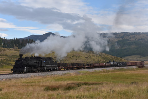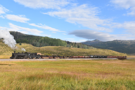 The regular train from Antonito, led by Cumbres and Toltec Scenic 2-8-2 487, nee Denver and Rio Grande Western 487, built by Baldwin in 1925.