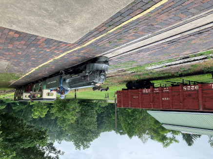it started to pour and we were glad to be inside. Our umbrellas came in very handy as we returned to the car, passing Sullivan Machinery 7 ton switcher 1, built by Whitcomb Locomotive Works in 1923, utilized as a children's attraction. We drove to Kankakee, Illinois, stopping at Jersey Mike's in Bradley before checking in to the Quality Inn for the night.
