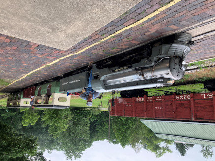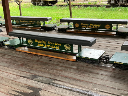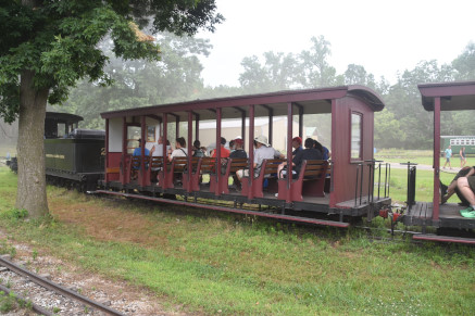 The equipment arrived on April 14, 1987. The brand-new, yet 47-year-old, CSK was immediately placed in the shop for cleaning and inspection. It was fired up for the first time in August 1987 and now serves as our regular locomotive for weekend operation. The India locomotive was retired in 1988 after a crack developed in the copper firebox, not quite making it to 100 years of operation. In 1990 the Orenstein & Koppel 0-8-0 was moved to the shop for a heavy restoration. In 1997 it was temporarily de-superheated, and in 1998 was reflued by the Hesston shop crew. Also in 1998, work started on construction of an enclosed passenger coach for the 24" line. In November 1998, two 36" gauge passenger coaches were purchased and transported from Cedar Point at Sandusky, Ohio.