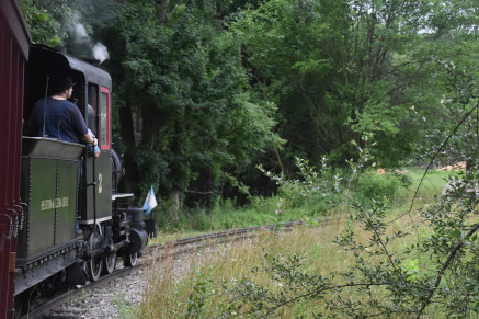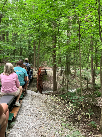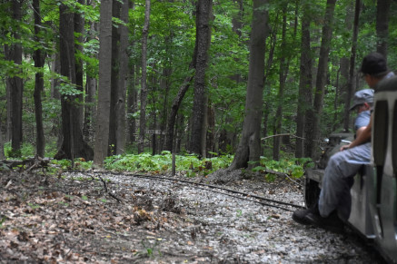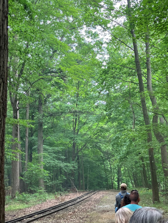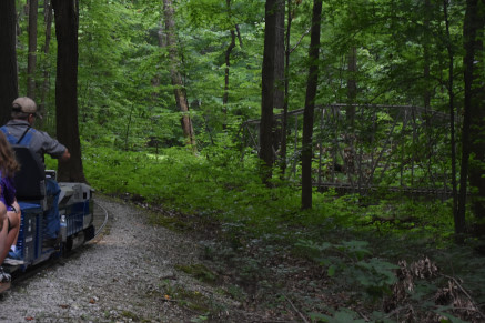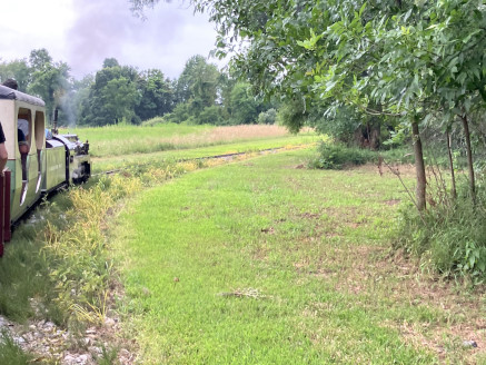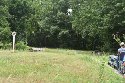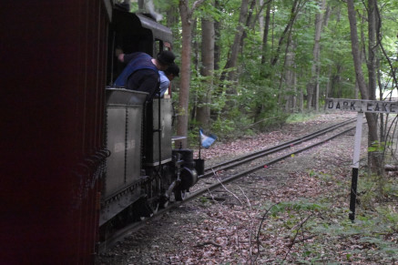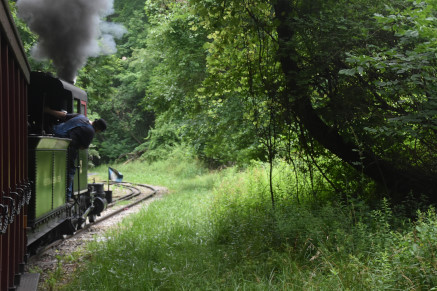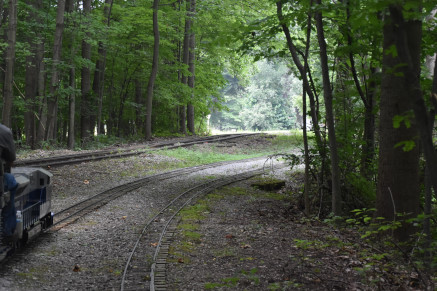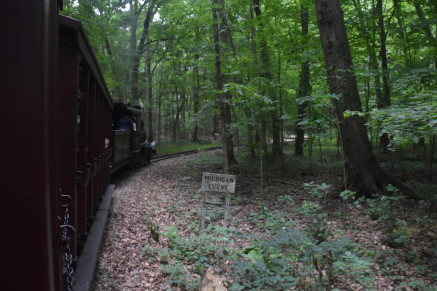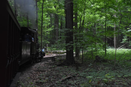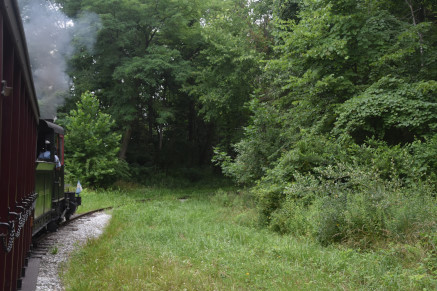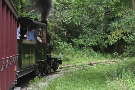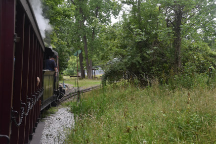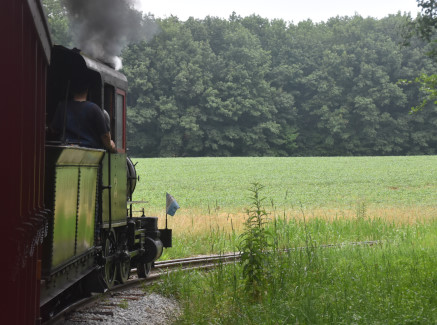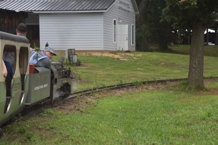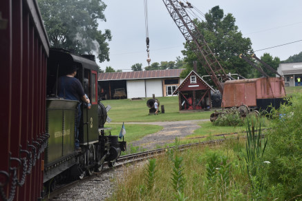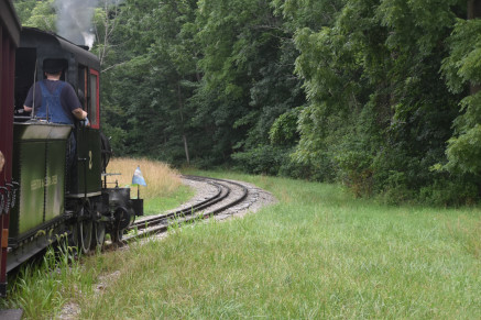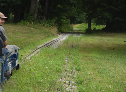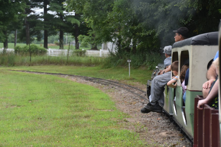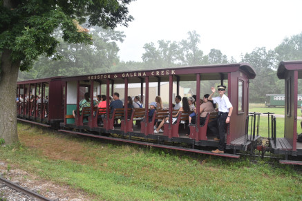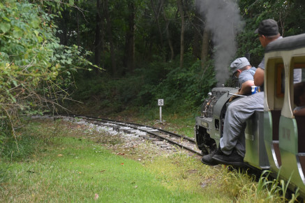 Early OperationsWeekend (Memorial Day to Labour Day) operation of the railroad began in 1969. Additional buildings were erected and more equipment arrived for restoration and exhibit each year. The Shay locomotive restoration was completed and dedicated August 30, 1975. Unfortunately, Mr. Donnelley passed away in late December 1975. His family donated the 14" gauge railroad that had operated on his Lake Forest estate and it was removed by society members during 1976 and moved to the steam grounds. Construction on the new site started in 1977. Completion in July 1982 was marked with a Golden Spike ceremony.