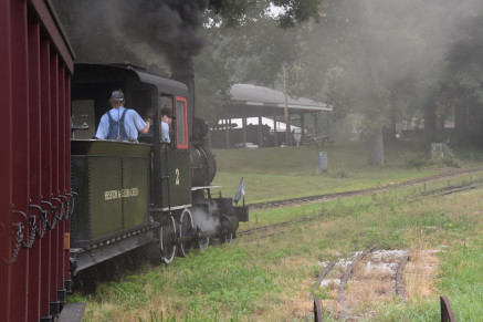 Adolf Myer 0-4-0T 4 built by Skoda in 1940. In 1971, it was sold to the George Mohun Steam Museum and later acquired by Hesston.