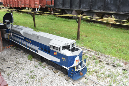 Elizabeth and I chose the 1/8" scale trains first, with Pennsylvania Railroad SD70ACe 8102 and Wabash SD70ACe 1070.