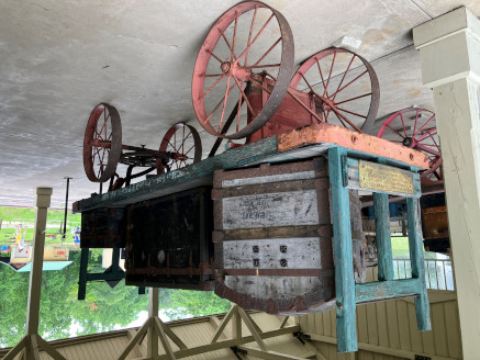 This Climax steam locomotive was built by Carl Stymans and Sons in Orange County, Virginia in 1928 and donated by Scott Sanderson. Such locomotives were built in Corry, Pennsylvania from 1888 until 1928 as a competitor to Shay Logging locomotives. The low speed gearing was designed to pull logs up steep grades. The short, ridged wheel base allowed them to navigate sharper curves than conventional "rod" type locomotives.