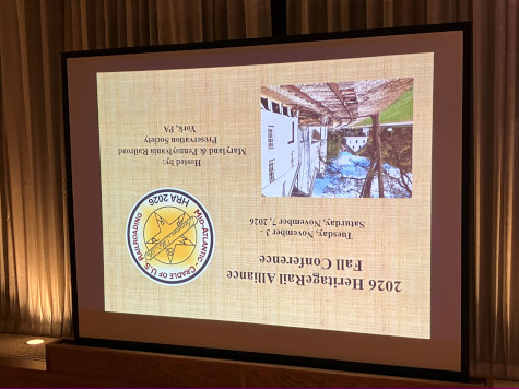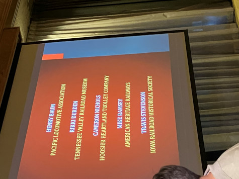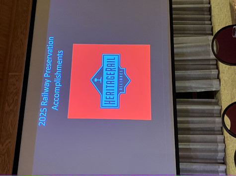 Terry Koller looks on as Aaron Isaacs, editor of the HRA Magazine (and Minnesota Transportation Museum archivist and curator), starts his presentation highlighting restoration projects, preservation or new excursion trains that have been in the news since the 2024 conference. Note: the descriptions below are taken from the individual organization's websites or social media postings to provide context.