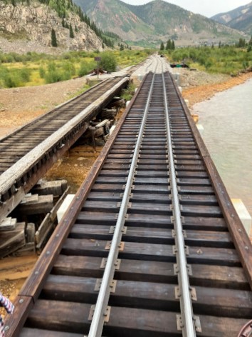 Continuing with the details about this bridge ... With the conceptual design and location of the bridge complete, one large question remained. What to do with the existing bridge once the new bridge is complete? Replacing, or affecting a structure such as bridge 495A is not something the Durango & Silverton takes lightly. The railroad is proud of its history and heritage and strives to keep both intact. In the case of the Elk Park replacement, the Rio Grande elected to leave the existing structure in place without track over it. To date, this decision has been inconsequential. The Durango & Silverton debated on whether to leave the existing Animas River Bridge in place for interpretation and to pay homage to the railroaders of years past who built the bridge, or if doing so could create unintended consequences in the future. In the end, the railroad elected to let the Animas River decide.