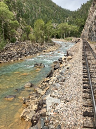 The Animas River as seen from the rear of "General Palmer", a popular place and those who spent time on the observation platform took turns.