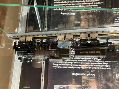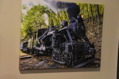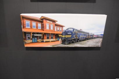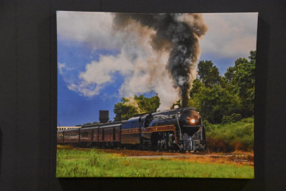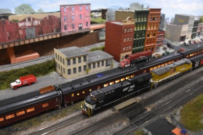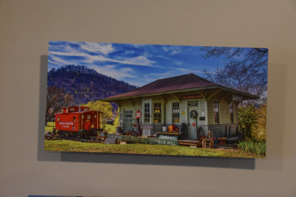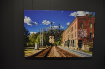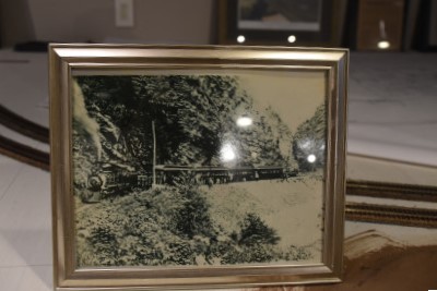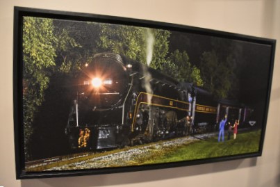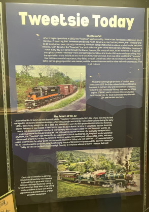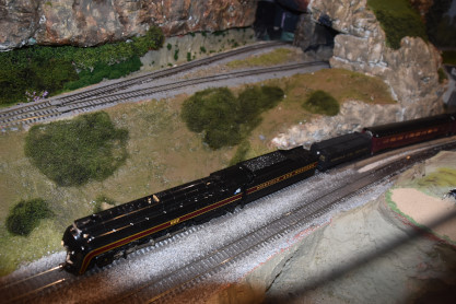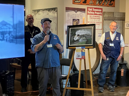 project. So not only will you be able to enjoy the operations of the trains, you will also be treated to watching the scenery and the appearance of the other two phases. Norfolk and Western 2-6-6-4 1240 built in the 1950's. A CSX train on the museum tracks. Southern Railway E8A 2923. Norfolk and Western J class 607. Norfolk Southern ET44AC 3625. The Roundhouse. Three Norfolk and Western steam locomotives. Area 5 of the layout. The extensive layout which has been constructed with alcoves that allows for the curvature of the terrain. Tweetsie train in the Doe River Gorge. Tank in the Narrows. More of the diorama, a work in progress. Baltimore caboose 294 among freight cars. A large collection of HO models. An Amfleet electric cab car. Norfolk and Western 2300 awaiting its turn on the layout. Clinchfield 819 pulling a freight train. After everyone had eaten, the attendees were called to gather in the museum area and a short informational video was shown; this was the first scene. We Are Home to 3 Railroad Heritage Interpretation and Preservation Organizations: