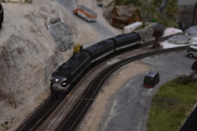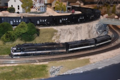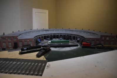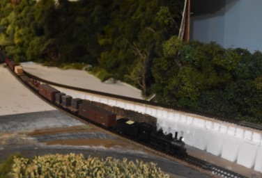 The previous layout which was a single plane race track that had room inside for assembling trains and switching activity. We had approximately 2.1 miles of track in this layout. That layout provided good platform since 2007, for our members to use their individual owned modules and assemble them to create a solid modeling platform. That layout had several modules of exceptionally quality and detailed scenery which we had in a new arrangement. One of the new modules is a bridge and valley arrangement created by Dr. Fred Alsop, that is inspired by the area north of Gate City known as Copper Creek which has dual bridge, one for the CSX and the other the Norfolk Southern.