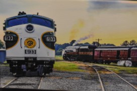 Southern FP7 6133 FP7, steam locomotive cab and the observation car with a drumhead from the Tennessee Valley Railway Museum.