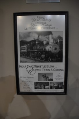 A poster for "Hear that Whistle Blow...Erwin Train A Coming", a play written by, and adapted from, oral histories collected by Bobby Funk, Professor at East Tennessee State University Theatre and Dance.